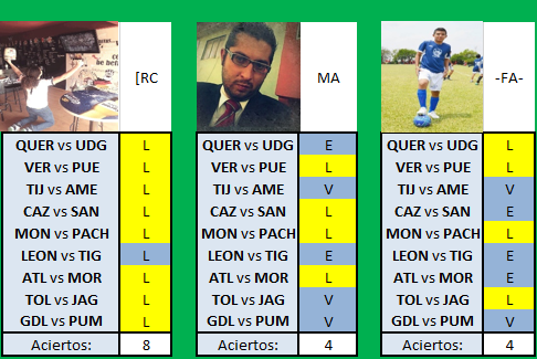 Sorprendentemente RC arrasó con la quiniela al tener 8 aciertos, pudieron ser 9, si hubiera confiado en el "Tuca" y sus Tigueres.